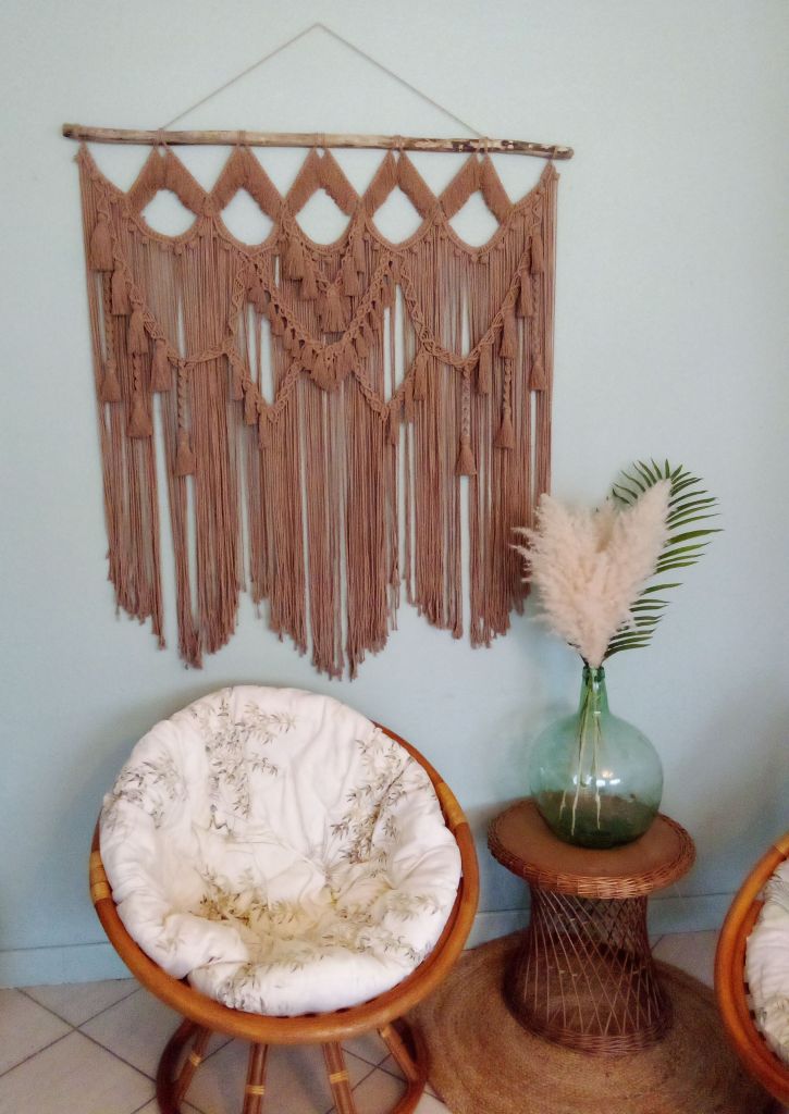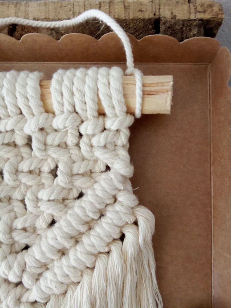C’est Faire des noeuds avec une corde, un fil, ou un bout de laine et sans outil particulier comme une aiguille, un crochet ou autre. On utilise que ses mains pour faire du macramé !